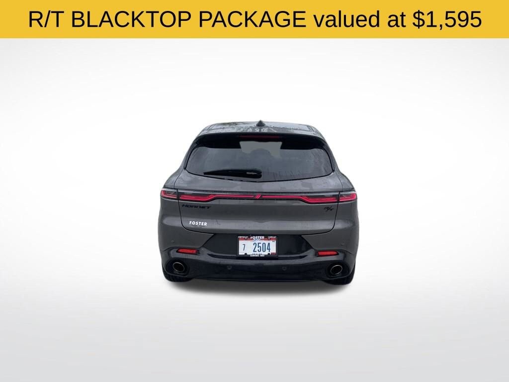 - R/T BLACKTOP PACKAGE: Elevate the Hornet's bold presence with a Dark Hornet Badge, Gloss Black Painted Day Light Opening, Dark R/T Badge, 18-inch Abyss Finish Aluminum Wheels, and Gloss Black Painted Mirror Caps.